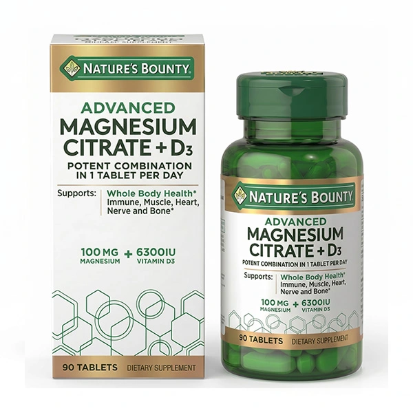 Support your immune health with Nature’s Bounty Advanced D3 + Magnesium Citrate Immune Formula. Containing a potent combination of Magnesium and Vitamin D, our innovative two-in-one formula utilizes the superior forms of each – Vitamin D3 and Magnesium Citrate – for better absorption and bioavailability. Magnesium assists with converting Vitamin D to its active form, which helps to support a healthy immune system. It is also an important bone health supplement, playing a key role in the body’s muscular reactions and cellular energy metabolism. Vitamin D supports immune health and is vital for neuromuscular health and function, bone health, and exercise recovery.
